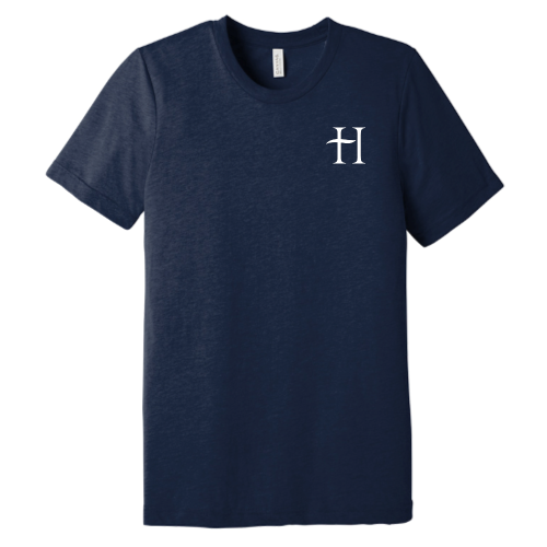 50% polyester, 25% combed and ringspun cotton, 25% rayon; 40 single 3.8 oz.; Black Heather Triblend: 70% combed ring-spun cotton, 15% polyester, 15% rayon; Retail fit;