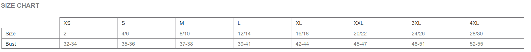 Size chart: