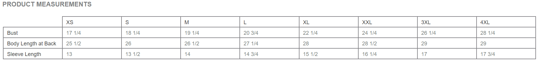 | 4XL | 27.75 | 29 | 17.75 |